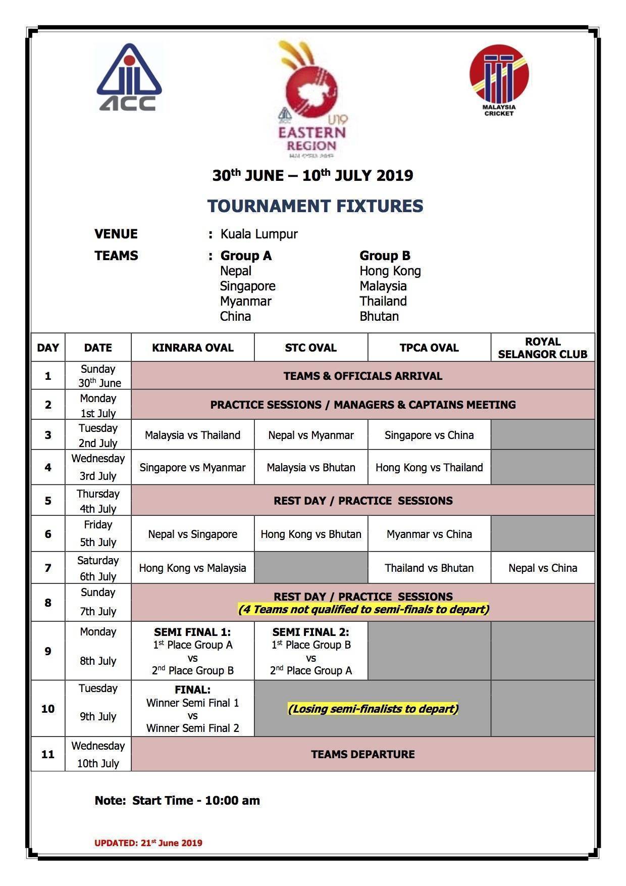 On Wednesday 26th June the Hong Kong National Under 19 Team headed to Kuala Lumpur, Malaysia for the Asian Cricket Council Under 19 Eastern Region Tournament.