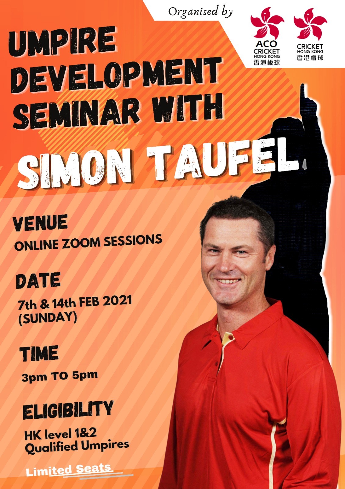 CHK and the Cricket Hong Kong Association of Cricket Officials are proud to announce the “Simon Taufel - Umpire Development Seminar” on Feb 7th and Feb 14th.