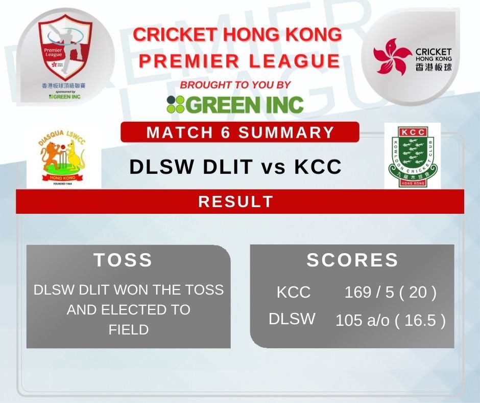 KCC 169/5 in 20 overs (Rory Cox 58, Jamie Atkinson 44, Ehsan Khan 4-0-40-3) beat DLSW DLIT 105 a/o in 16.5 overs (Aftab Hussain 37, Jason Davidson 3.5-0-20-4, Daniel Pascoe 4-0-19-3) by 64 runs