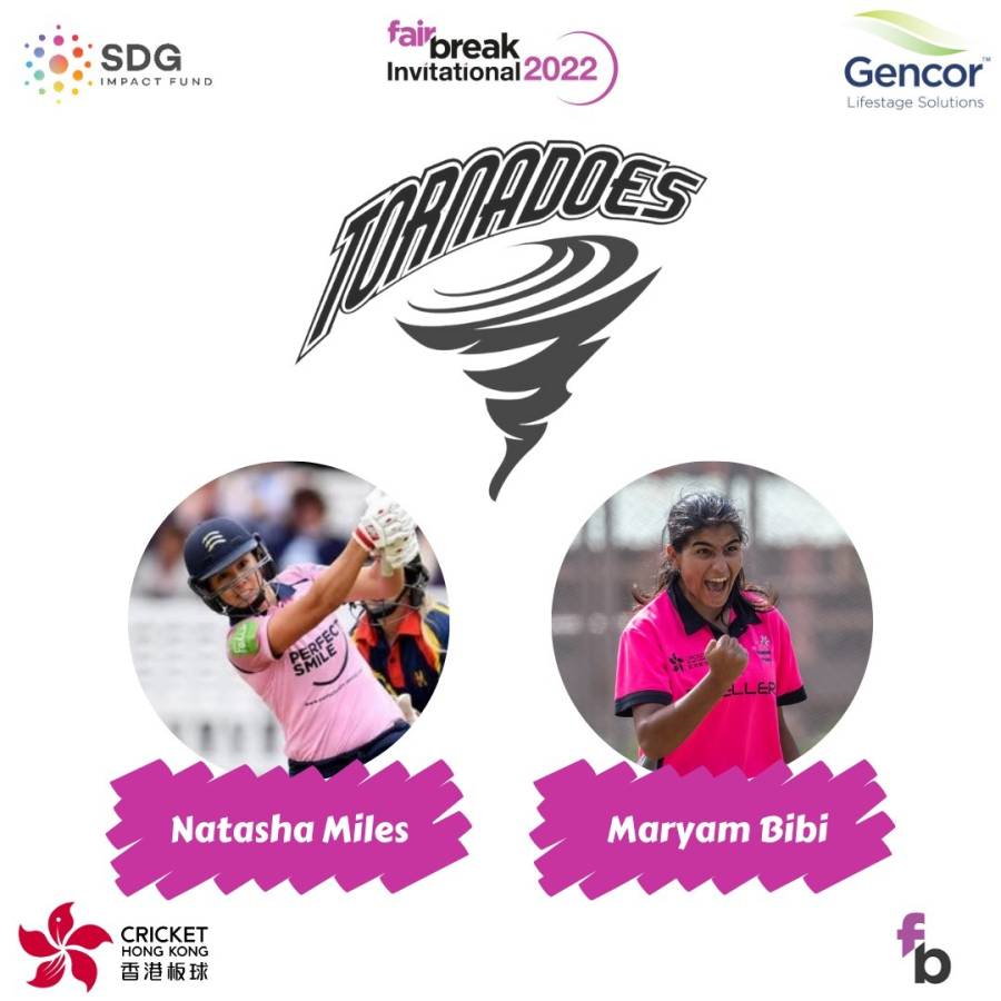 Natasha Miles and the HK up and coming player Maryam Bibi will join Tornadoes. The 19-year-old, Maryam says ”I am excited to play in FairBreak. It’s because I can chat and learn from the world class cricketers and coaches also. It may inspire my cricket skills and sense.”