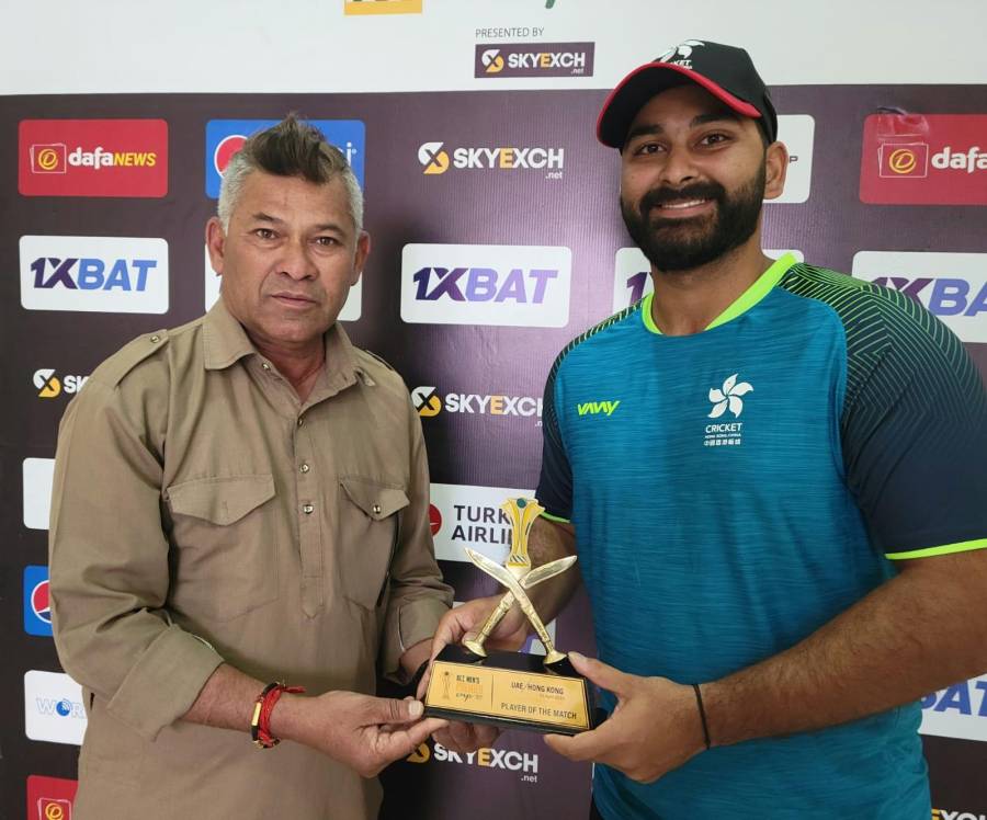 Creating Hong Kong’s first breakthrough once again, right-arm fast bowler Ayush Shukla saw out UAE’s captain Muhammad Waseem for single-digit figures. Yasim Murtaza didn’t miss the leather after Waseem attempted the outside edge.