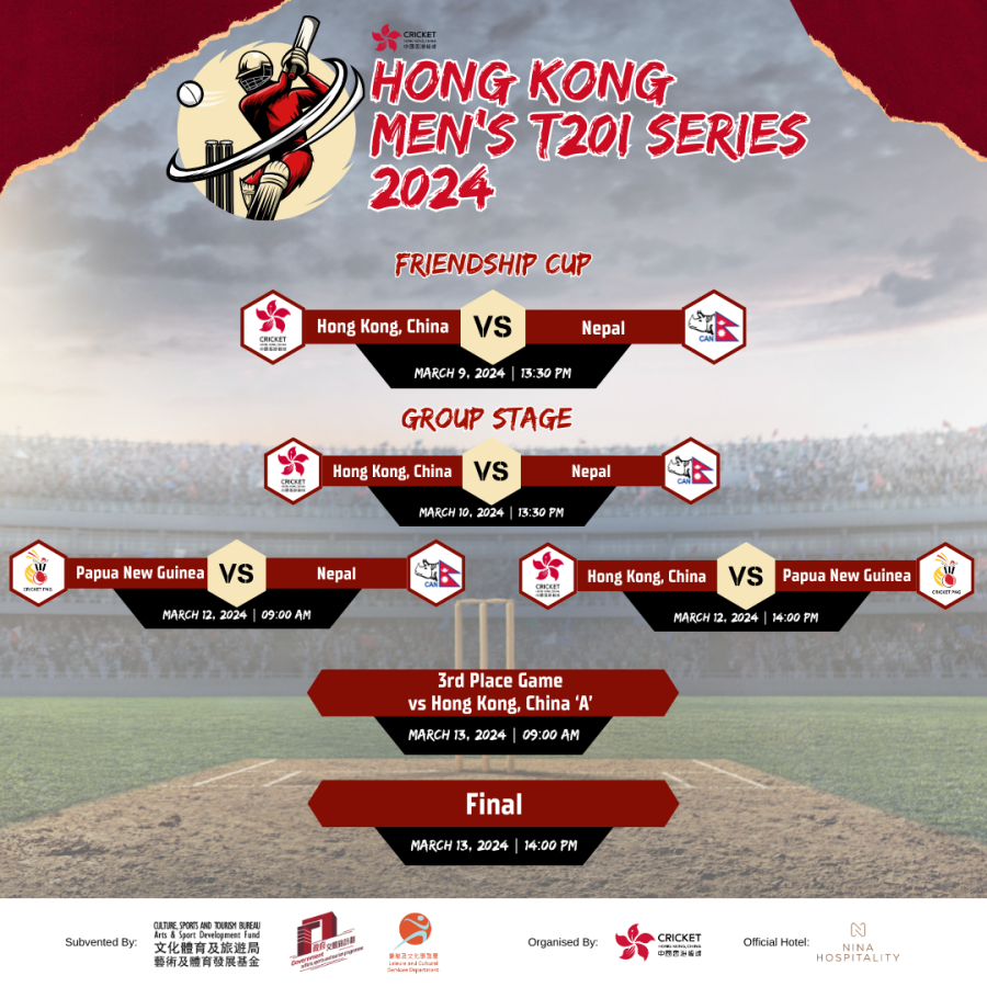 13:30pm – Hong Kong Men’s T20I Series Friendship Cup - Hong Kong, China vs Nepal