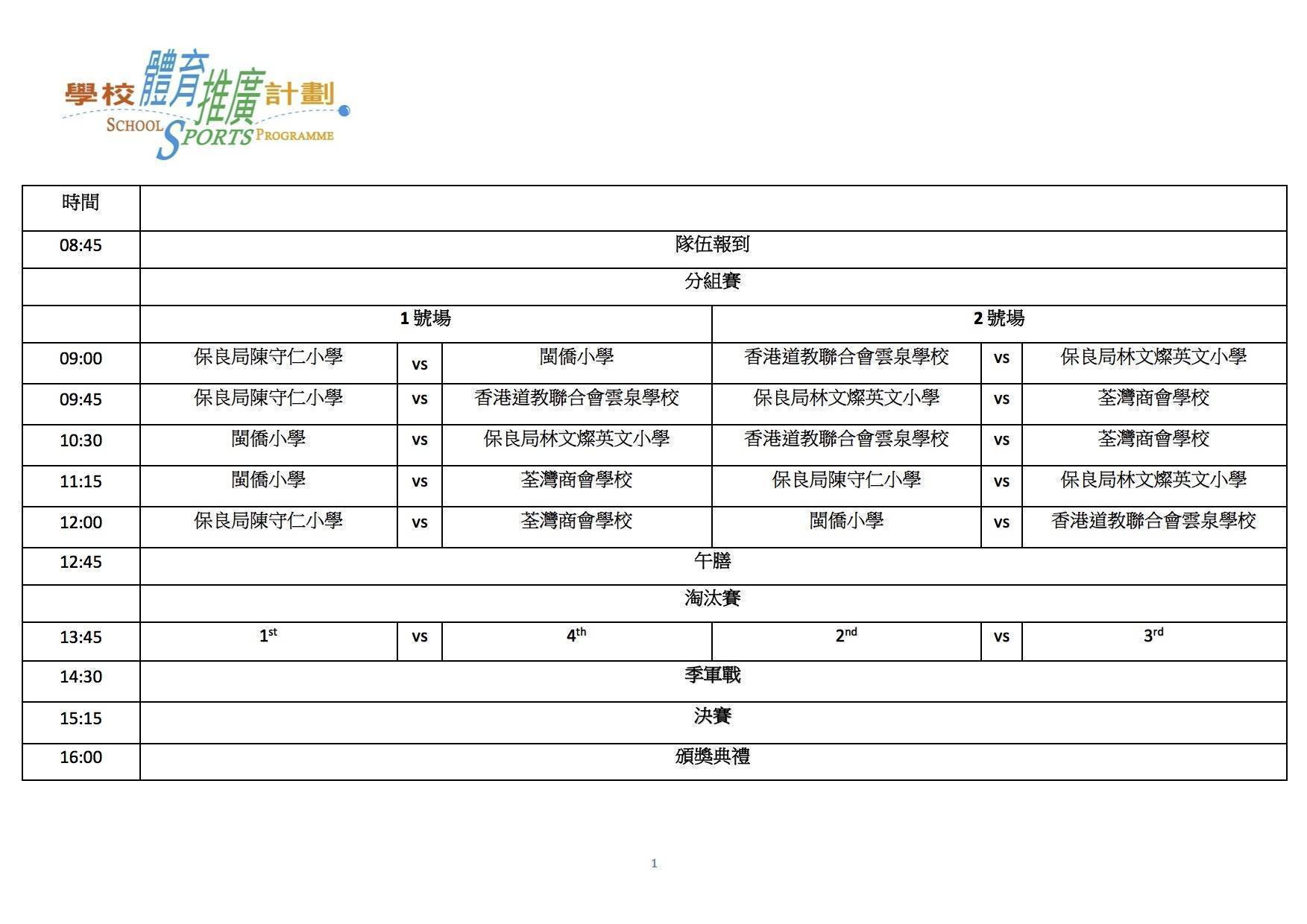 由於賽程編排緊密,賽事不會設有午膳時間,學校請提醒學生自備午膳及足夠飲品。